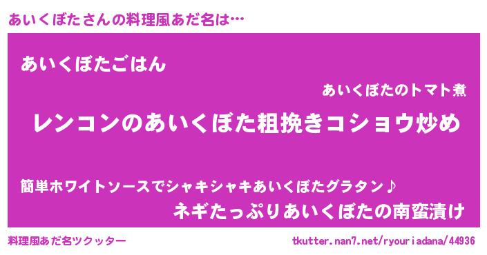 | 女子向けラノベタイトル風あだ名 | 『あいくぼたなんてお断りですっ。』 |
