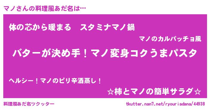 | 女子向けラノベタイトル風あだ名 | 『マノ恋絵巻』『マノの雑貨屋さん』 |