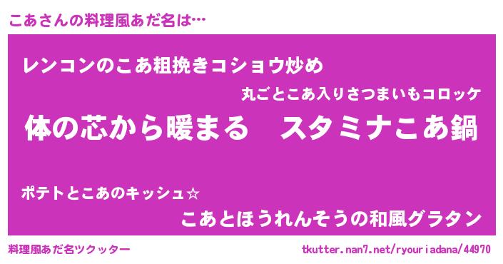 | 女子向けラノベタイトル風あだ名 | 『こあの雑貨屋さん』 |