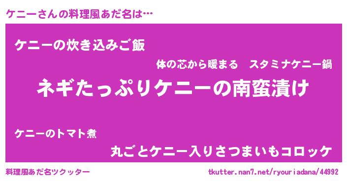 | ヒーロー風カッコイイあだ名 | 『スーパーケニー』『仮面ケニダー』 |