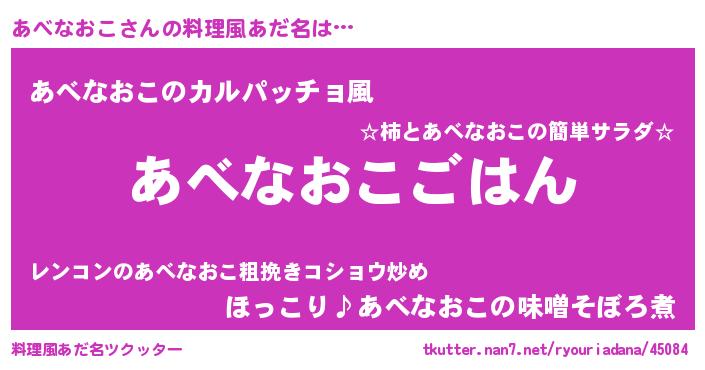 | 男性向けラノベタイトル風あだ名 | 『アベナオコスレイヤー』 |