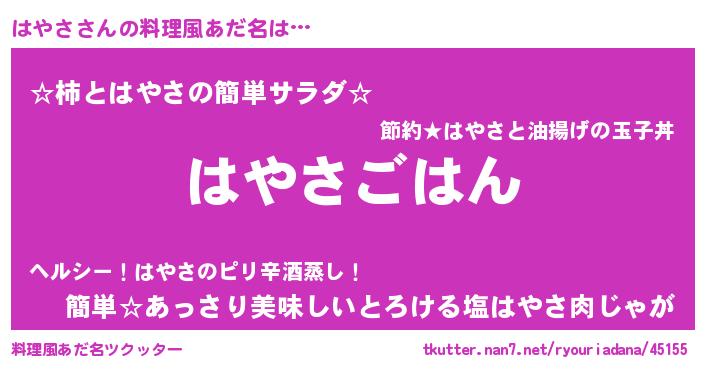 | 男性向けラノベタイトル風あだ名 | 『ハヤサスレイヤー』『緋弾のハヤサ』 |