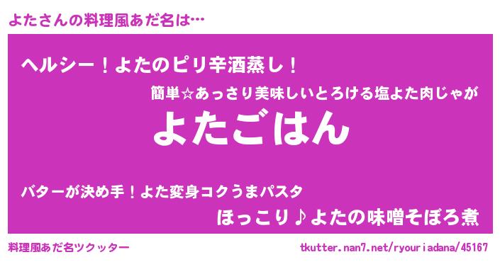 | ヘコむあだ名 | 『よたっふぃ~』『よた(笑)』 |