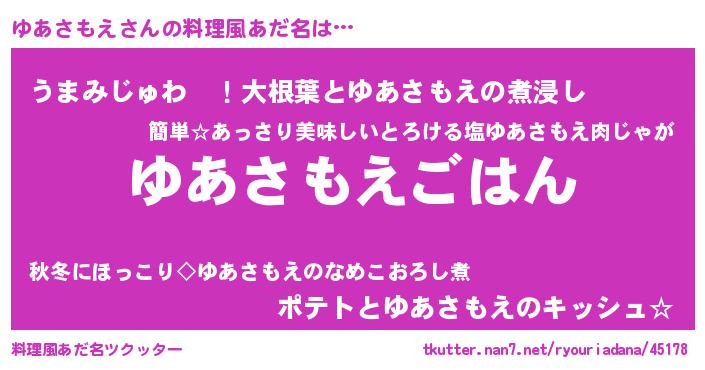 | ヘコむあだ名 | 『豆乳』『ゆあお』『ゆあさもえ(笑)』 |