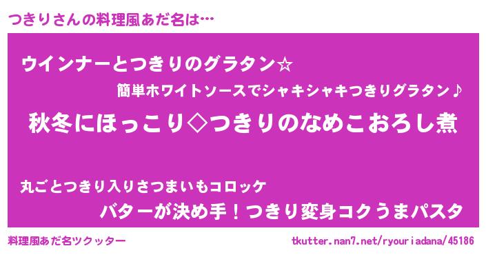 | ヘコむあだ名 | 『酢こんぶ』『つきお』『つきり(笑)』 |