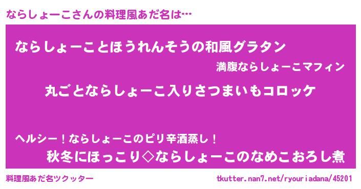 | 意味不明あだ名 | 『住所不定無職ならしょーこ(91歳)』 |