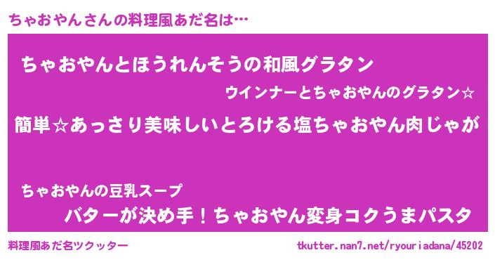 | ヒーロー風カッコイイあだ名 | 『ネオチャオヤン』『暗黒騎士チャ』 |
