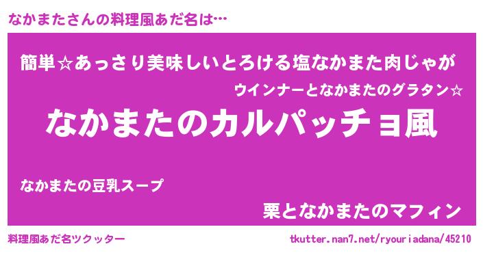 | ヘコむあだ名 | 『なかまた(笑)』『豆乳』『なか太郎』 |