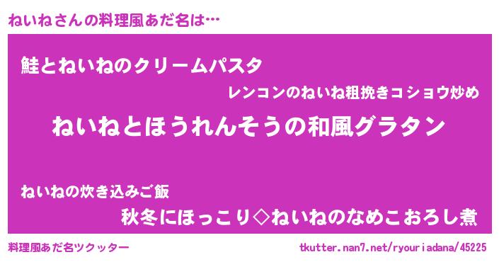 | ヘコむあだ名 | 『ねいね(笑)』『ねいにー』『ねいお』 |