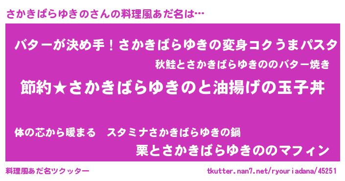 | ヘコむあだ名 | 『さかにー』『さかきばらゆきの(遠い目)』 |