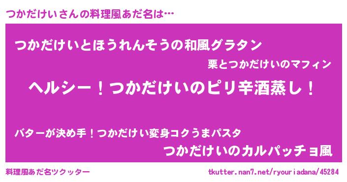| 意味不明あだ名 | 『自称つかだけい』『ニラ科つかだけい属』 |