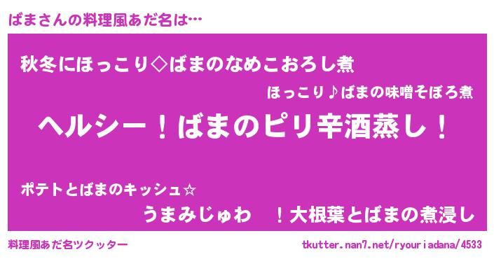 | ポケモン風あだ名 | 『バマセウス』『バマゴンZ』『ヒバマ』 |