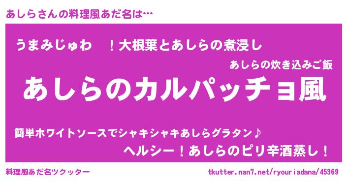 | 意味不明あだ名 | 『住所不定無職あしら(84歳)』『自称あしら』 |