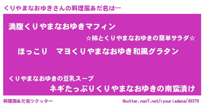 | 男性向けラノベタイトル風あだ名 | 『この素晴らしい世界にくりやまなおゆきを!』 |