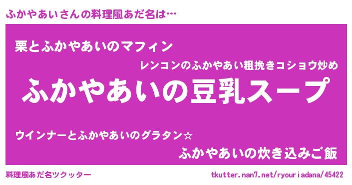 | 胡散臭い通販商品みたいなあだ名 | 『信頼と実績のサプリメント…その名も「ふかやあい」』 |