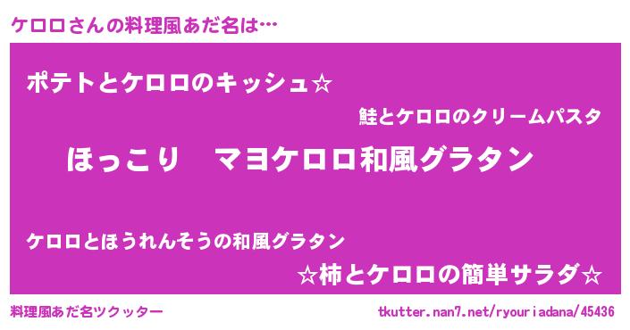 | 意味不明あだ名 | 『住所不定無職ケロロ(47歳)』 |