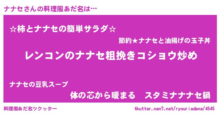 | ヘコむあだ名 | 『牛乳』『ナナっふぃ~』『ナナっ子』 |