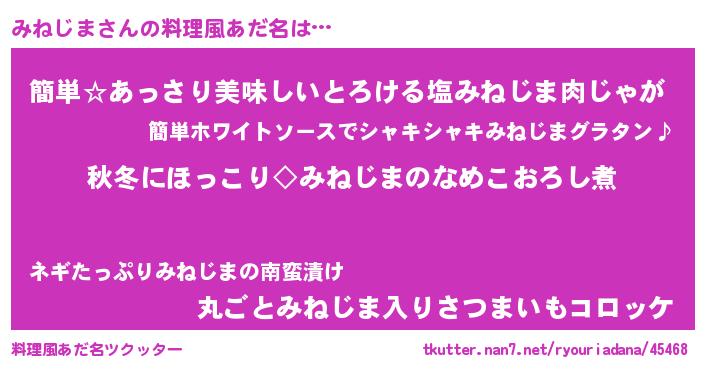 | 意味不明あだ名 | 『永久保存みねじま』『ペロリンみねじま』 |