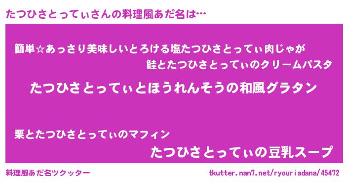 | ヘコむあだ名 | 『たつひさとってぃ(笑)』『たつぷりん』 |