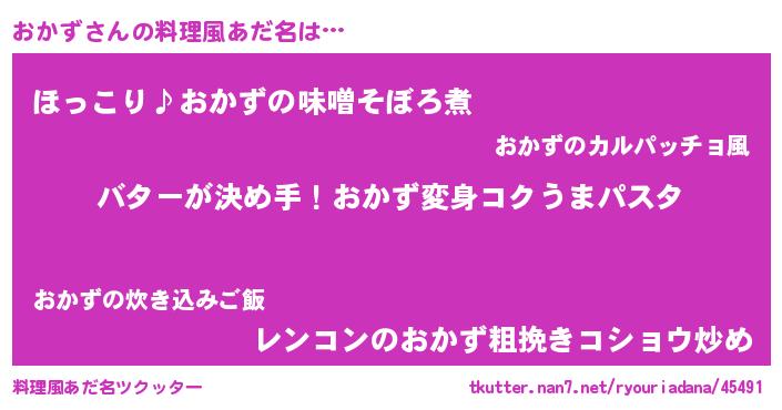 | 女子向けラノベタイトル風あだ名 | 『おかず恋絵巻』『おかずアンティーク』 |