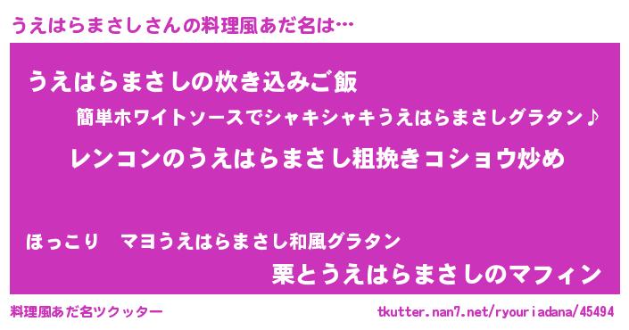 | 恥ずかしいあだ名 | 『ウエハラマサシデラックス』『うえちん』 |