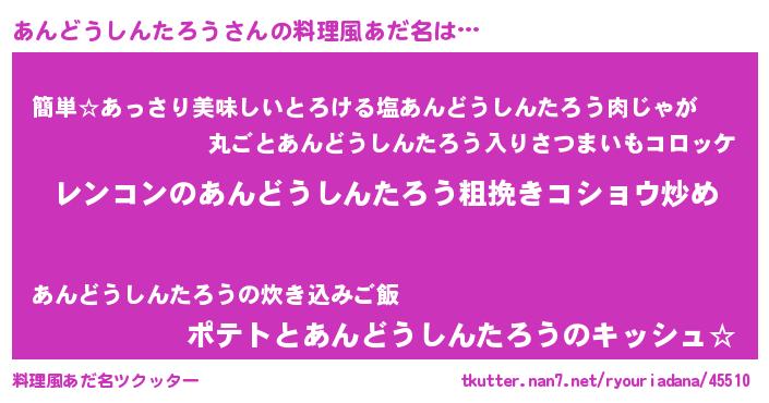 | 意味不明あだ名 | 『自称あんどうしんたろう』 |