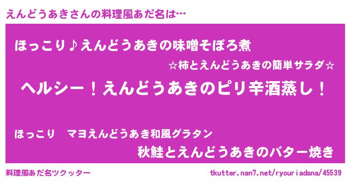 | 男性向けラノベタイトル風あだ名 | 『Re:えんどうあきから始める異世界生活』 |