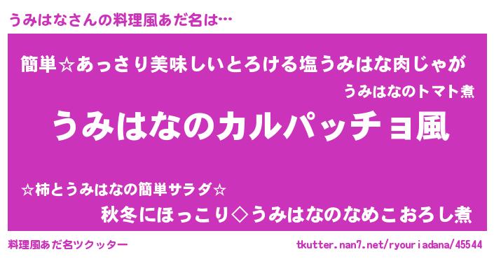 | ヘコむあだ名 | 『うみはな(小並感)』『うみお』 |