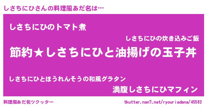 | 男性向けラノベタイトル風あだ名 | 『シサチニヒアートオンライン』 |