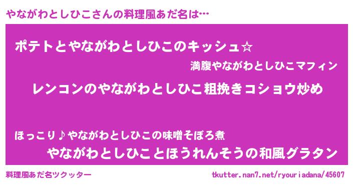 | 女子向けラノベタイトル風あだ名 | 『やながわとしひこなんてお断りですっ。』 |