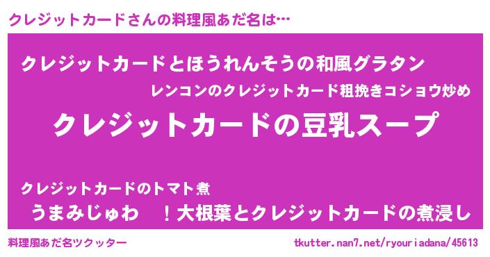 | 意味不明あだ名 | 『とにかく怪しいクレジットカード』 |