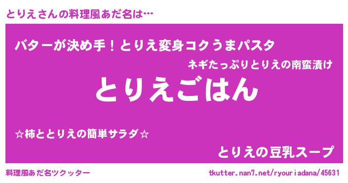 | 意味不明あだ名 | 『エリンギ科とりえ属』『ペロリンとりえ』 |