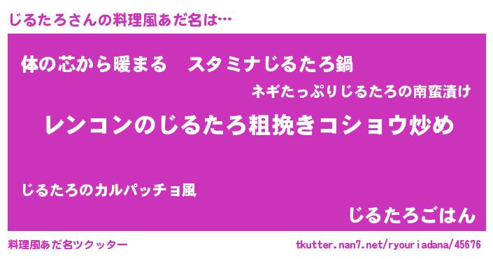| 胡散臭い通販商品みたいなあだ名 | 『テレビで話題の高麗人参…その名も「じるたろ」』 |