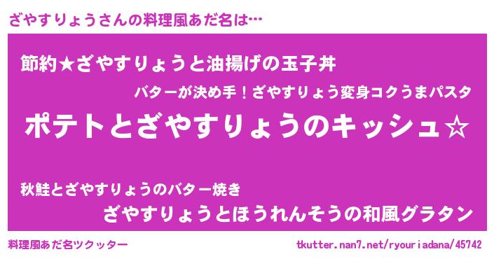 | 女子向けラノベタイトル風あだ名 | 『ざやすりょうの卵を拾いまして』 |