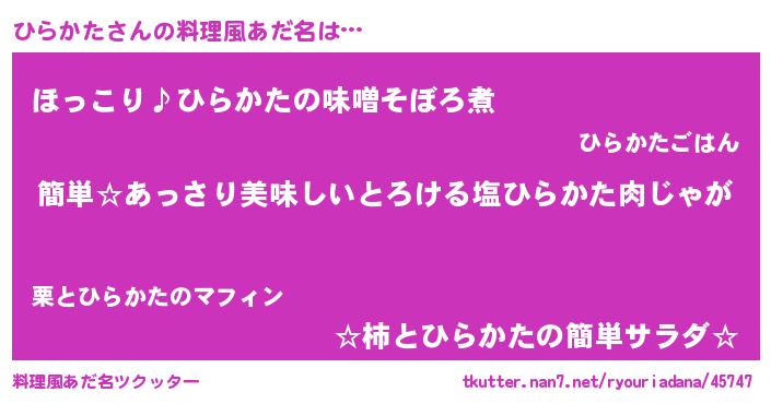 | ヘコむあだ名 | 『ひらかた(遠い目)』『ひらにゅー』 |