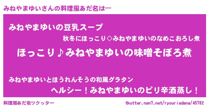 | 恥ずかしいあだ名 | 『プリティーみねやまゆい』『みねっちょ』 |