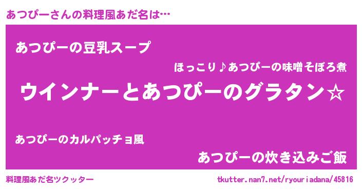 | 欧米人風あだ名 | 『あつぴークリステル』 |