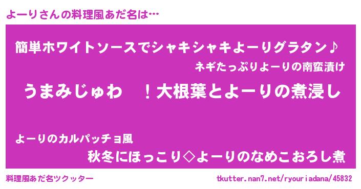 | 意味不明あだ名 | 『よーりフォーエバー』『ペロリンよーり』 |