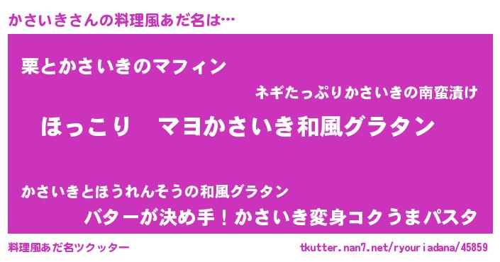 | 男性向けラノベタイトル風あだ名 | 『この素晴らしい世界にかさいきを!』 |
