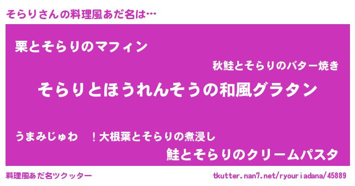| 意味不明あだ名 | 『もやし科そらり属』『永久保存そらり』 |