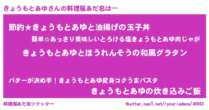 | ヘコむあだ名 | 『きょっふぃ~』『きょうもとあゆ(笑)』 |