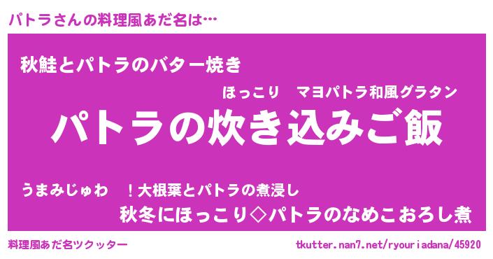 | 意味不明あだ名 | 『永久保存パトラ』『パトラフォーエバー』 |