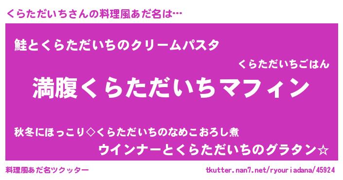 | 男性向けラノベタイトル風あだ名 | 『くらただいちという概念が存在しない退屈な世界 』 |