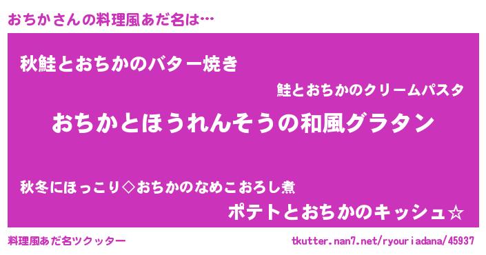 | 女子向けラノベタイトル風あだ名 | 『おちかの玉の輿計画!』 |