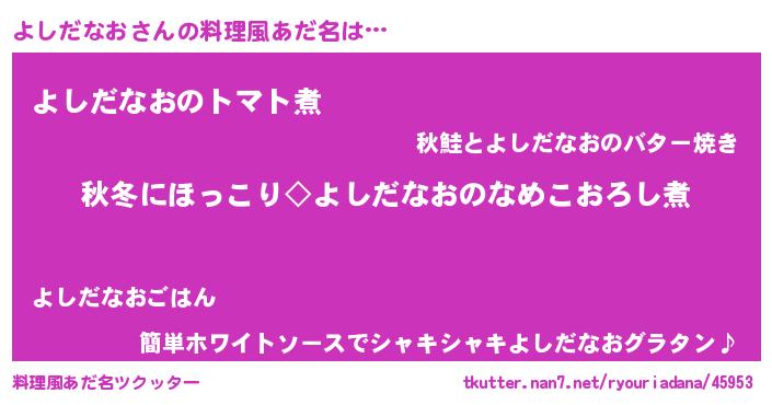 | ヘコむあだ名 | 『よしお』『よしだなお(笑)』 |