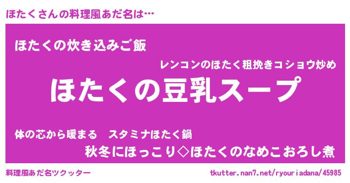 | ヘコむあだ名 | 『ほたを』『なまこ酢』『ほたにゅー』 |