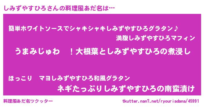 | ポケモン風あだ名 | 『シミズダネ』『ヒシミズヤスヒロ』 |