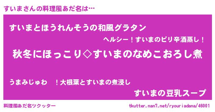 | 意味不明あだ名 | 『ニラ科すいま属』『自称すいま』 |