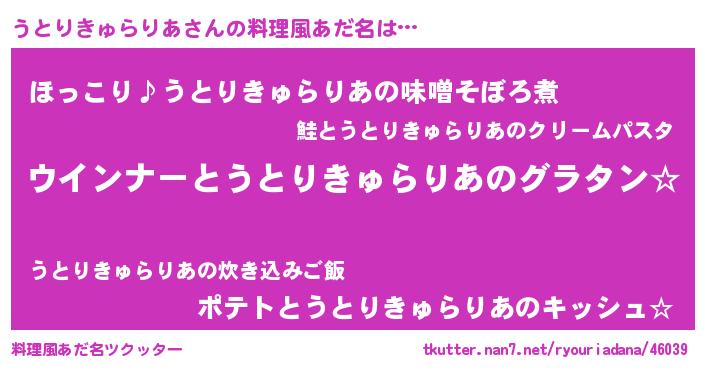 | 意味不明あだ名 | 『うとりきゅらりあフォーエバー』 |
