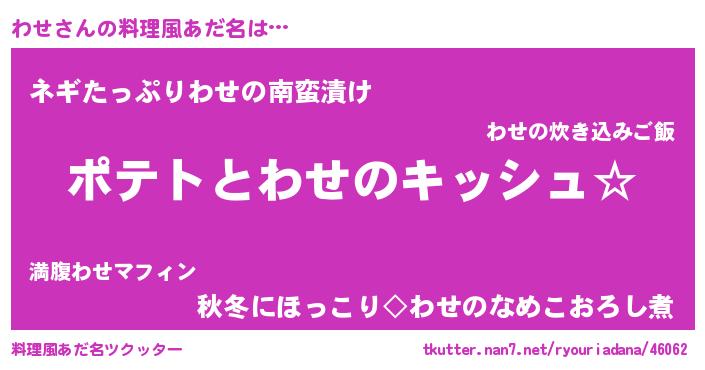 | 女子向けラノベタイトル風あだ名 | 『わせの卵を拾いまして』 |